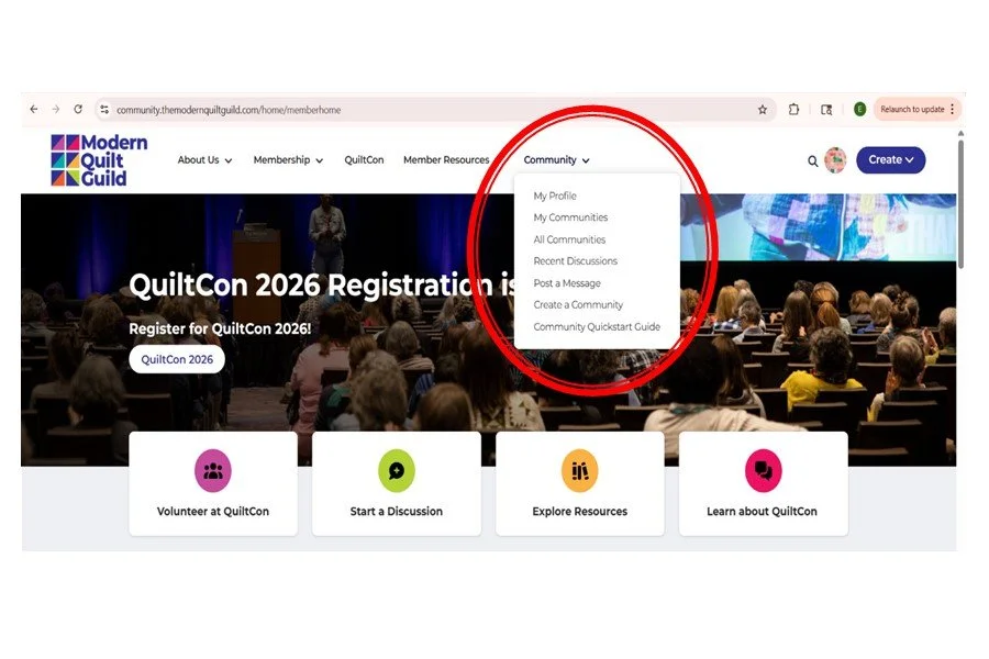 You’ll also find information about following members and sending or accepting contact requests. For the MQG step-by-step guide, look here: https://community.themodernquiltguild.com/blogs/jennifer-fisher/2024/06/08/join-in-the-conversation