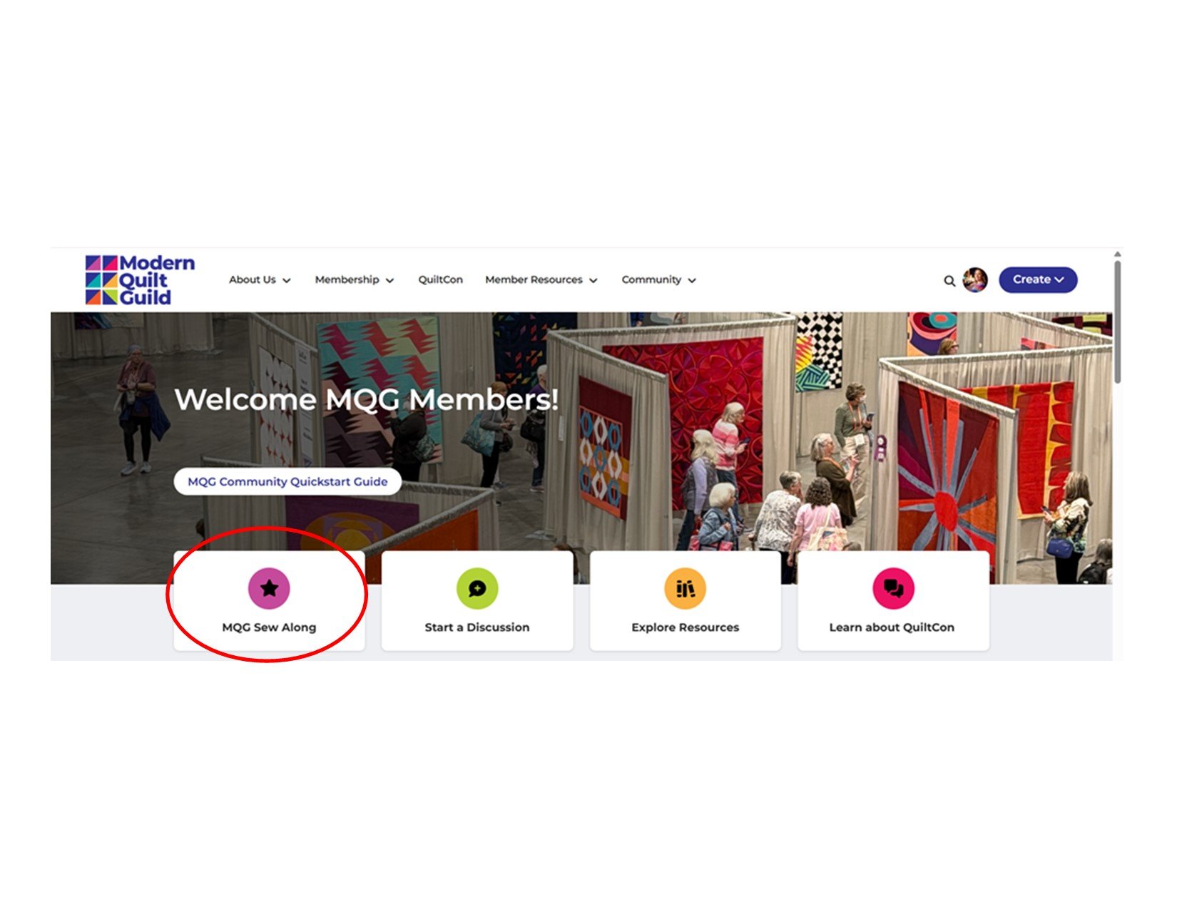 Start by logging in to the Modern Quilt Guild (There is a previous blog post showing you how to get signed up.)