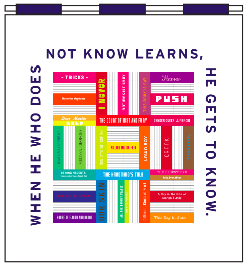 The symbol we will create is based on Nea Onnim, the Adinkra symbol for knowledge, life-long education, and a continued quest for knowledge. The quilt design will be made up of pieced and embroidered book spines, stacked together as if on a book shelf, coming together to form a Nea Onnim symbol. This project intends to serve as a form of activism to raise awareness for banned books and the impact these challenges have on intellectual freedom and access to information. Visit this source for more information on Adinkra symbols.