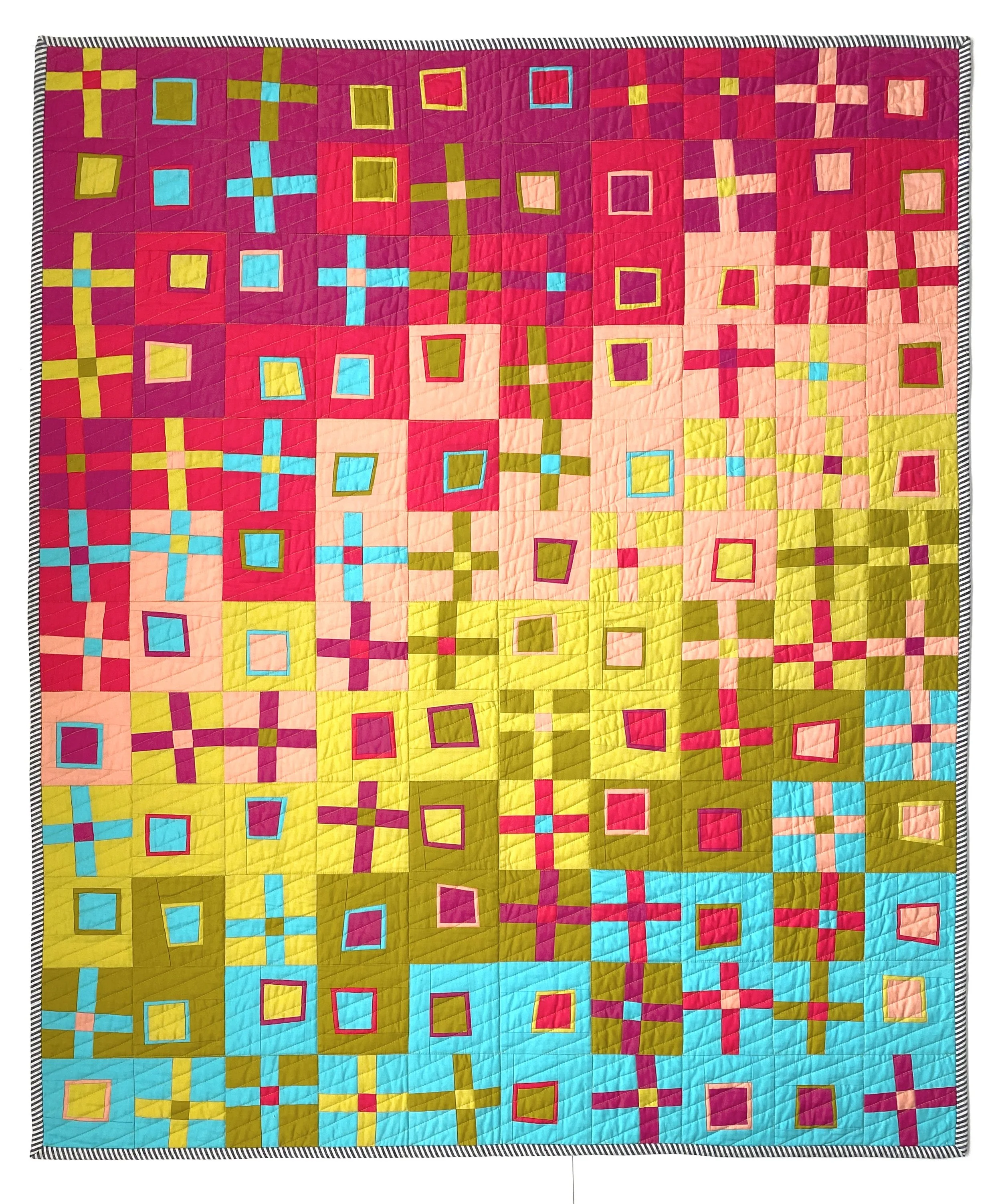 “Working from digital to analogue combines the quick gratification of generative design with the slow handcraft of building a quilt. I love not knowing what the composition will look like until the Processing tool renders the image on-screen. There are millions of possible combinations and each one is unique. But in the end, it’s the idea of transforming intangible strings of letters and numbers into something warm and luxurious that really appeals to me.”